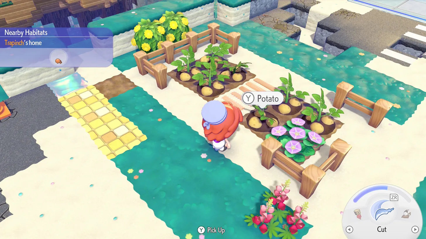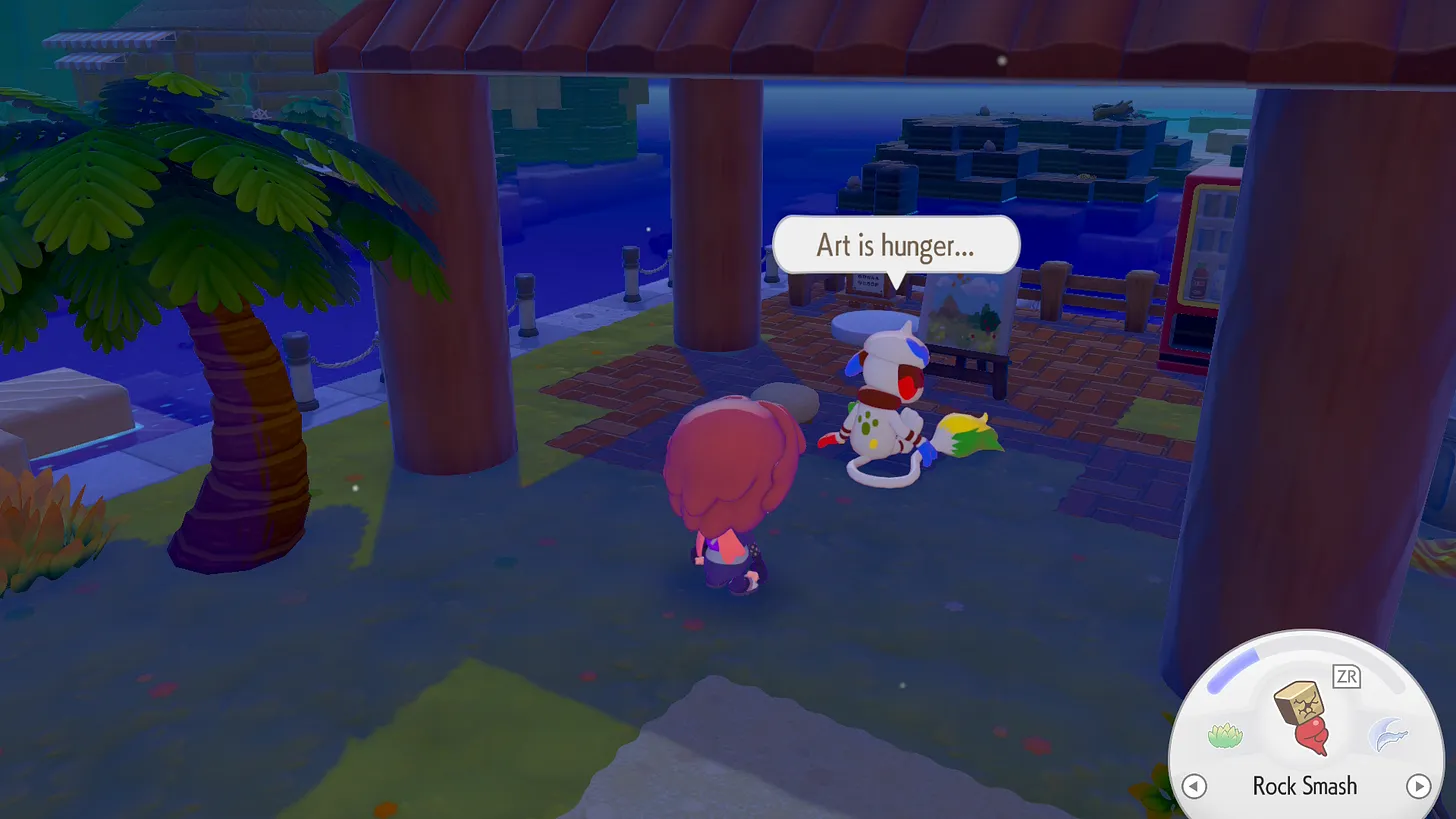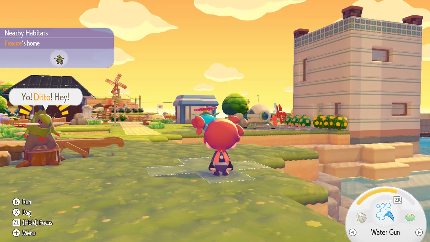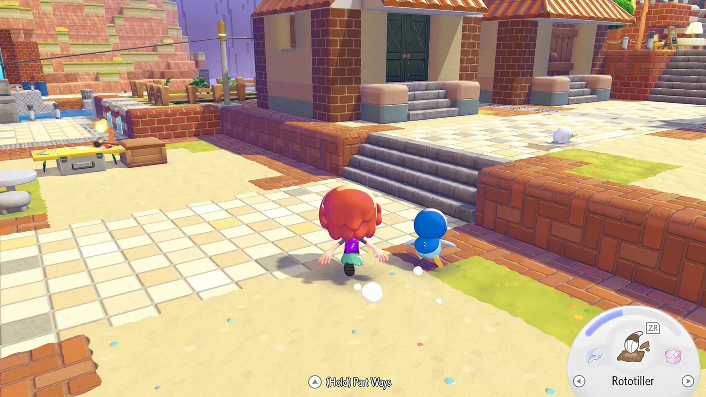 Nepaisant to, kad šis žaidimas akivaizdžiai kurtas ant turtingos ir tvirtos Dragon Quest Builders bazės, jį vis lyginu su Animal Crossing. Kodėl? Na visų pirma todėl, kad Pokopia perima kai kurias pamatines Animal Crossing mechanikas, kaip antai – paros meto žaidime ir realybėje sąsaja, veikėjų ir veiksmų pokyčiai priklausantys nuo paros meto ar orų, kasdienės užduotėlės ir žaidėjui draugiška ekonomika – šį kartą be jokių Tomo Nūko spąstų!