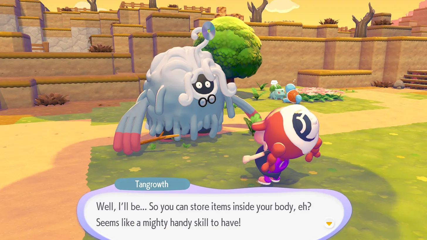 Pokémonų fanai iš šio žaidimo tiesiog gaus dvigubą dovaną. Pradėkime nuo to, kad rinkoje nėra dažni žaidimai, kuriuose mes esame ne pokémonų treneriai, o patys pokemonai. Vien tai verta daug ko, o tą žinojo ir žaidimo kūrėjai, tikrai skyrę mega dėmesį žaidimo tekstams. Pokopia, be abejo, suponuoja utopiją, o utopijose visi laimingi. Tiesa, tokiame kontekste esame pratę laimę matyti kaip ydą, neleidžiančia peržvelgti kiaurai distopinius paveikslus, bet ne šiuo atveju. Ši utopija tyra, infantili ir nuoširdi. Kiekvienas žaidimo dialogas, lyg dviejų, puikios nuotaikos vaikučių, pirmą syk susidūrusių kieme: